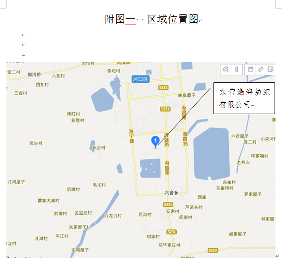 東營(yíng)渤海紡織有限公司位于東營(yíng)市河口區(qū)海河路以西、陽河路以北,占地面積100畝。廠區(qū)所在地南面為陽河路,距離為20m,廠區(qū)西面為東營(yíng)市布萊特石油裝備有限公司、東營(yíng)市三鎮(zhèn)服飾有限公司,距離大約15m;東面為海河路,距離大約為20m,海河路以東為金色河口(集團(tuán))新型材料有限責(zé)任公司、預(yù)制砂漿廠、東營(yíng)建友新型材料有限公司、匯昶飼料廠和東營(yíng)市廣和化工有限公司),距離為80m;北面為金河路,距離大約為20m,金河路以北為東營(yíng)市大中南實(shí)業(yè)有限公司,距離大約為120m。 |