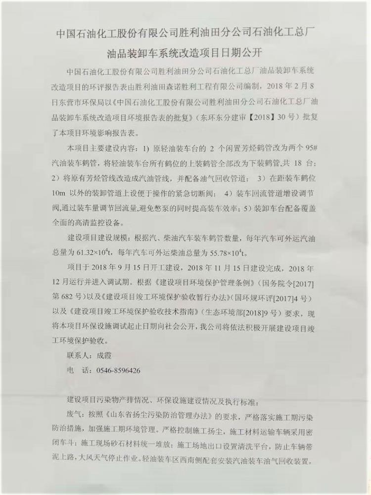 中國石油化工股份有限公司勝利油田分公司石油化工總廠油品裝卸車系統改造項目日期公開