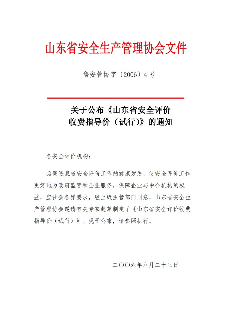 根據《山東省安全評價收費指導價(試行)》魯安管協字〔2006〕4號的要求,我單位收費標準如下:
